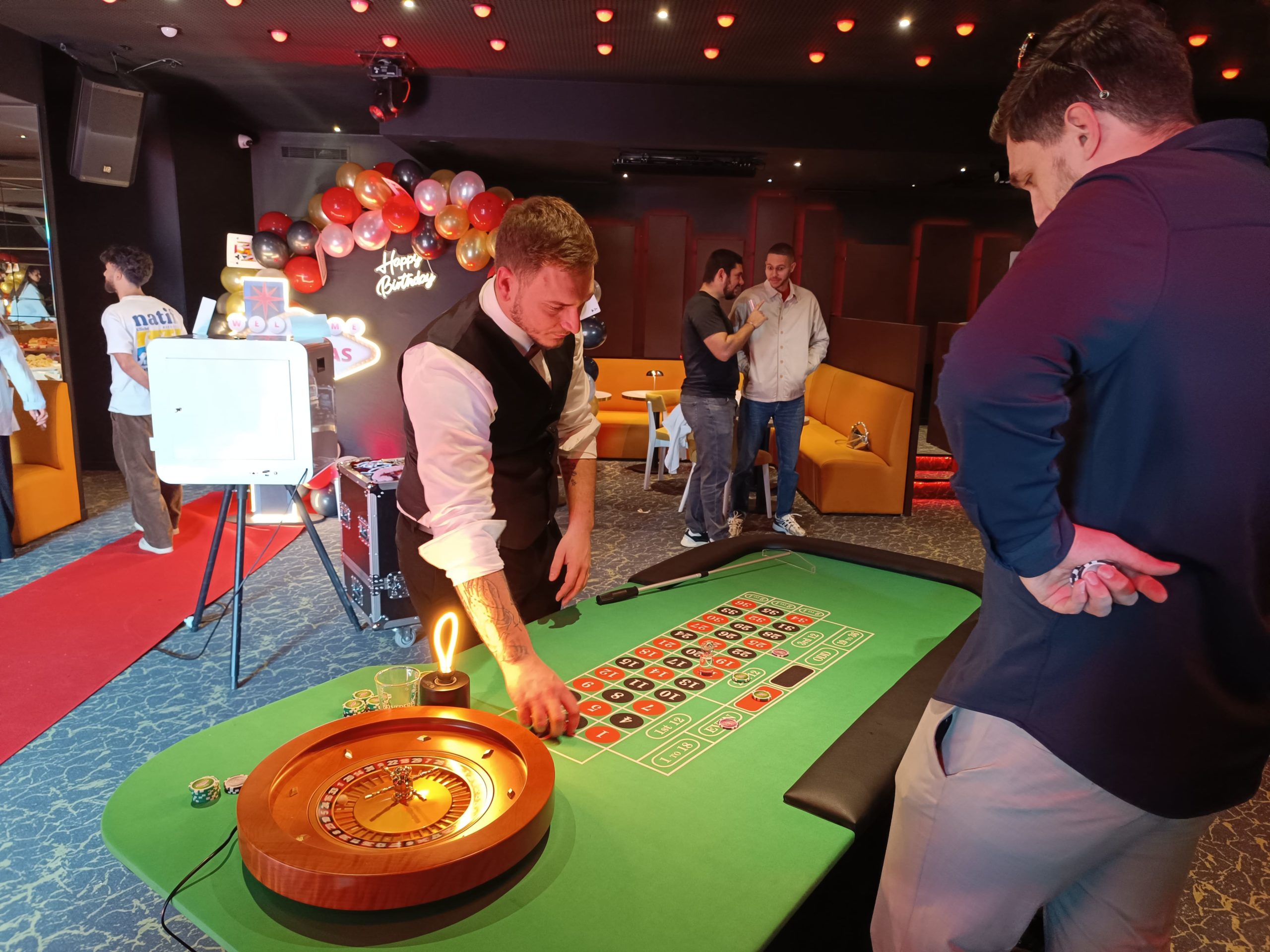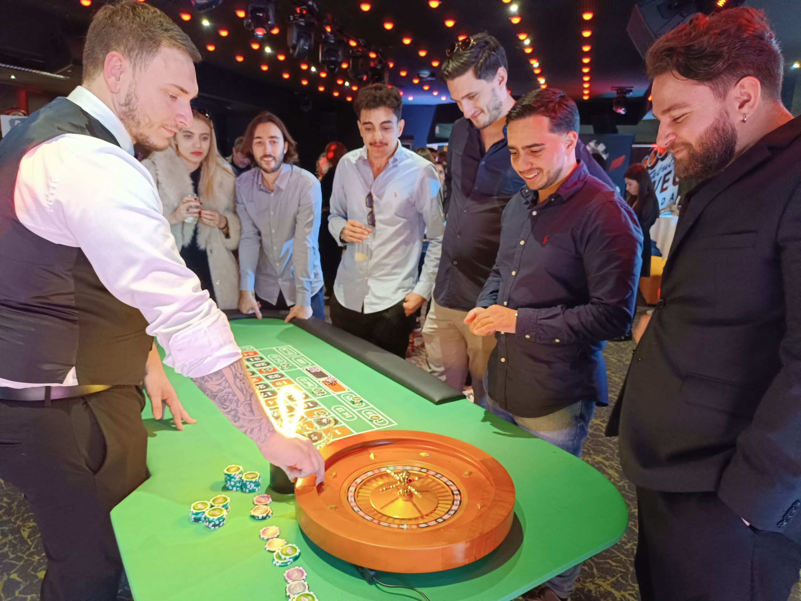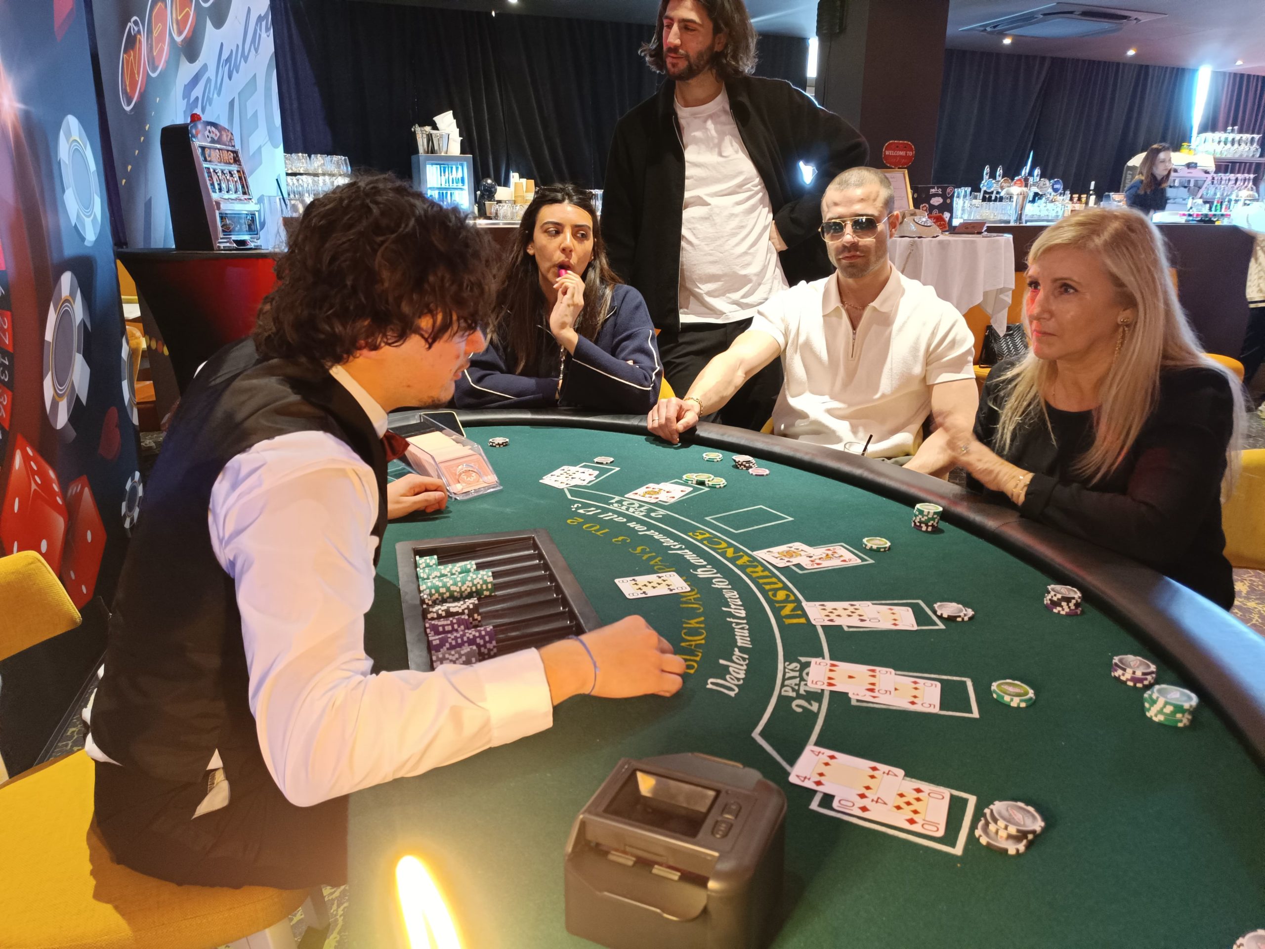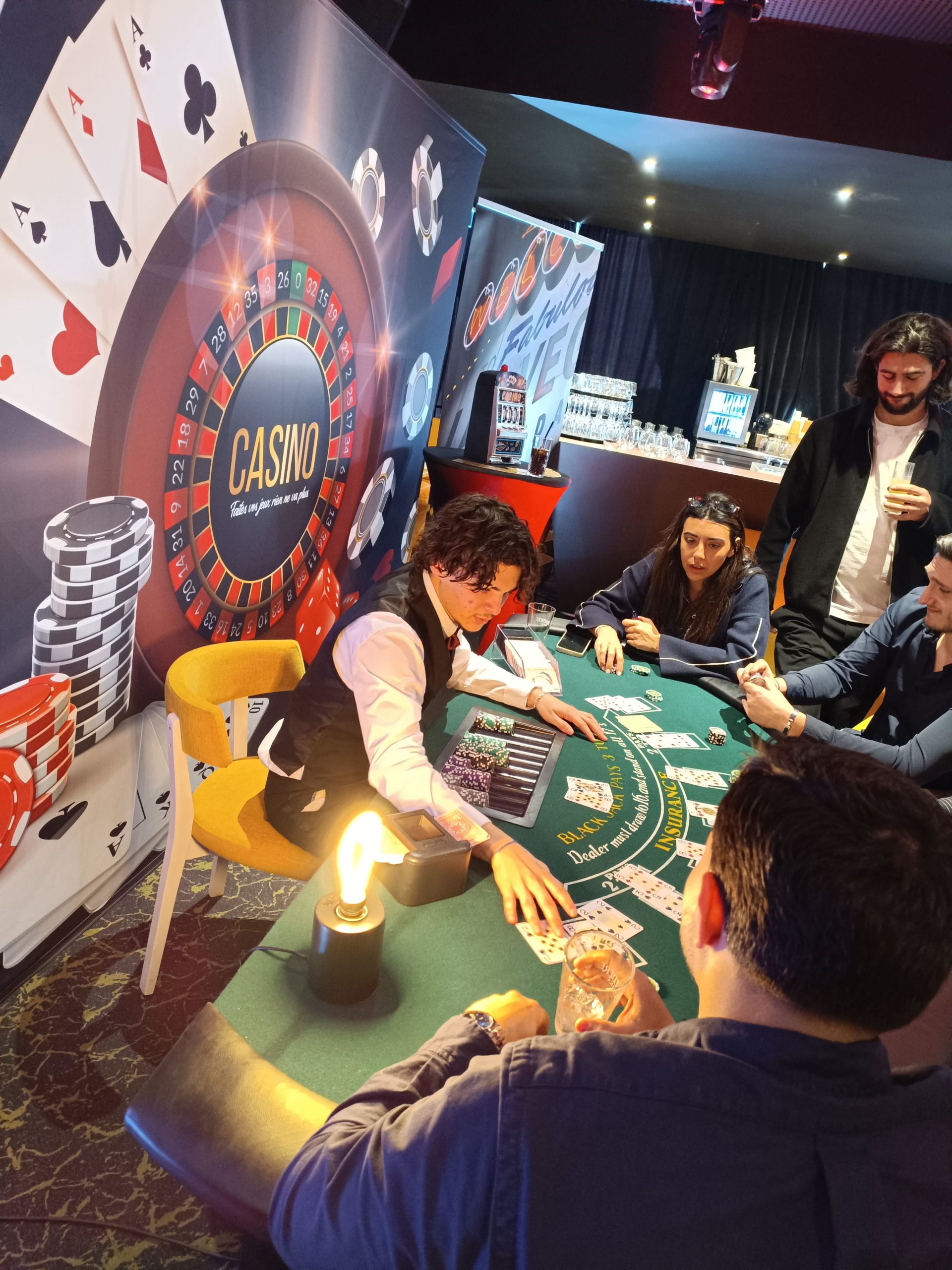Ici, pas d’argent en jeu, pas de stress : nos croupiers expliquent les règles, guident les joueurs et créent une ambiance conviviale où chacun peut tenter sa chance, débutant comme joueur confirmé.
